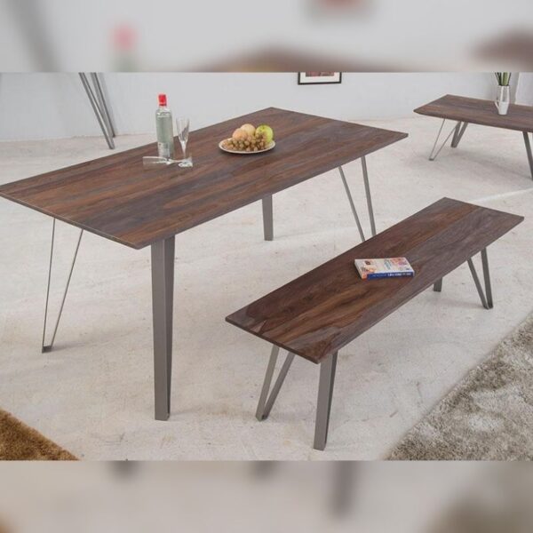 4 Seater Dining Table with 2 Chairs & 1 Small Bench in Walnut Color