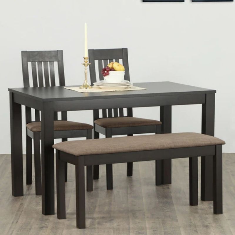 Category: Dining Tables Tag: 4 Seater Dining Table with 2 Chairs & 1 Small Bench in Walnut Color