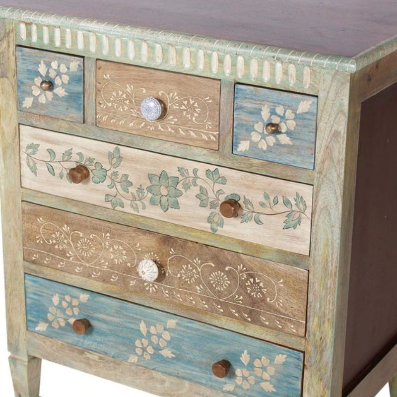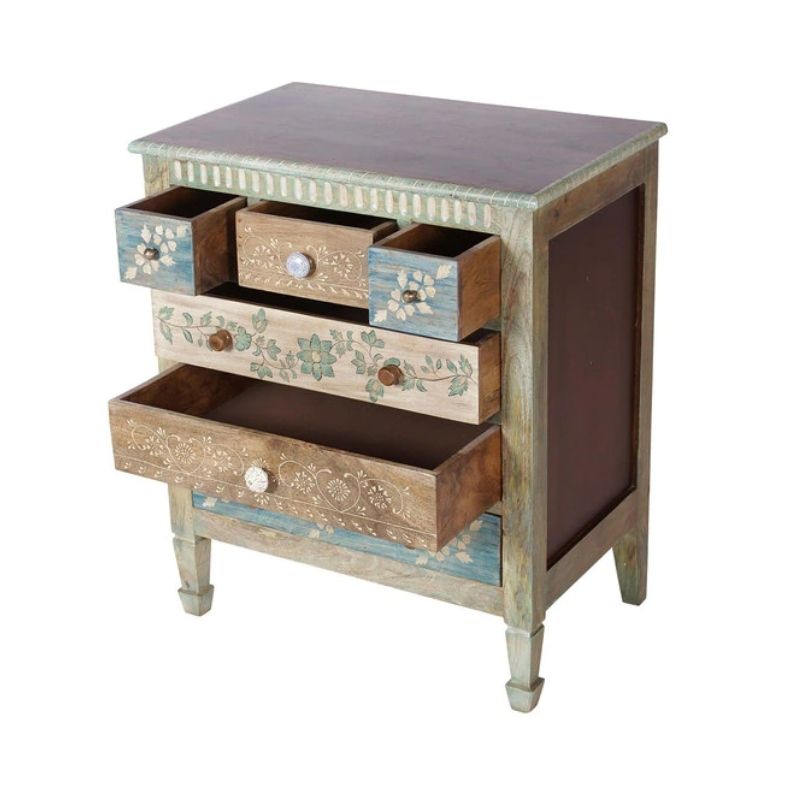 All of our products are handcrafted & handmade using techniques passed down through many generations, using old-world authentic hand tools. This entails skilled time-consuming work done overseas in India. The final product is a very unique piece of furniture unlike the assembly line furniture you find in large retailers!