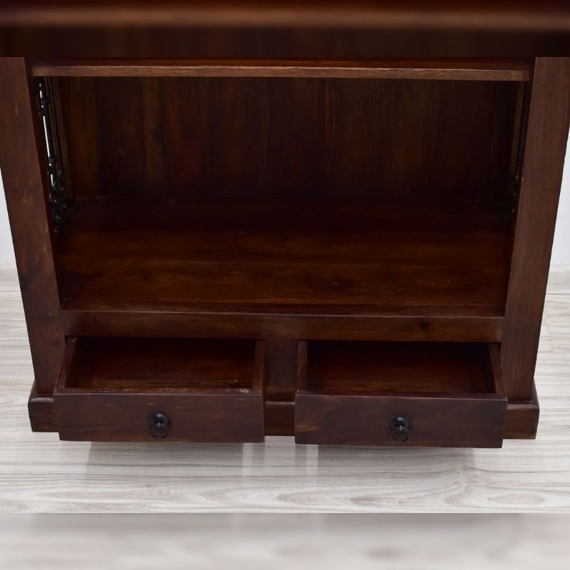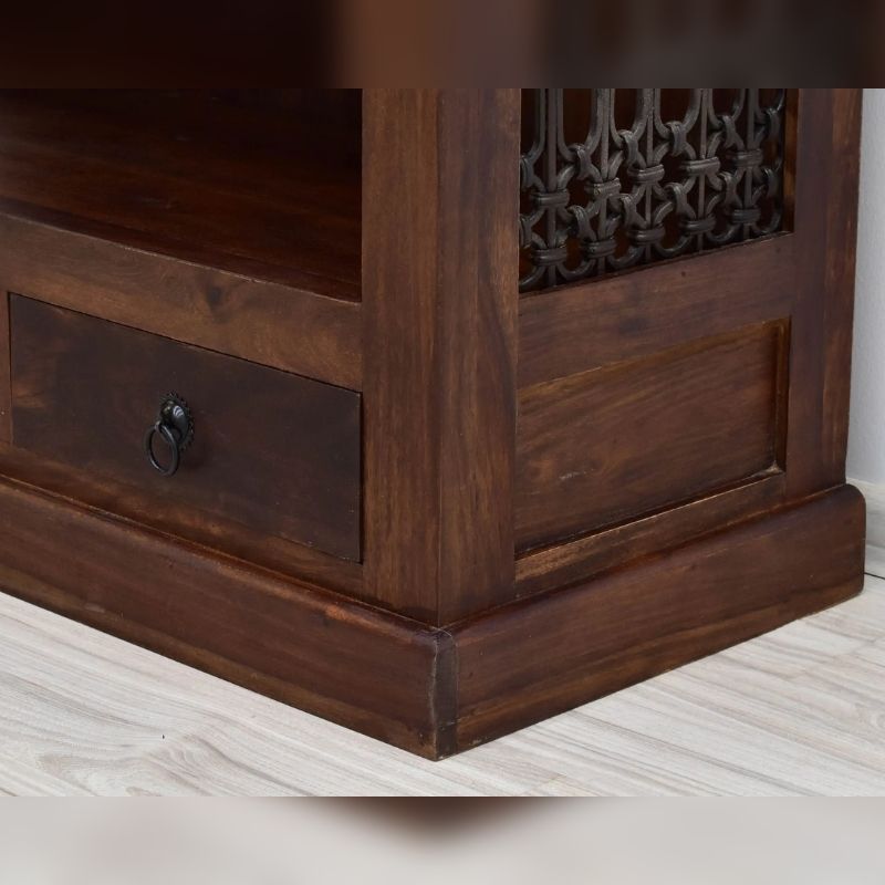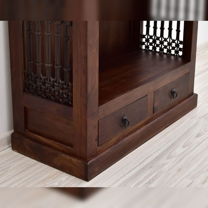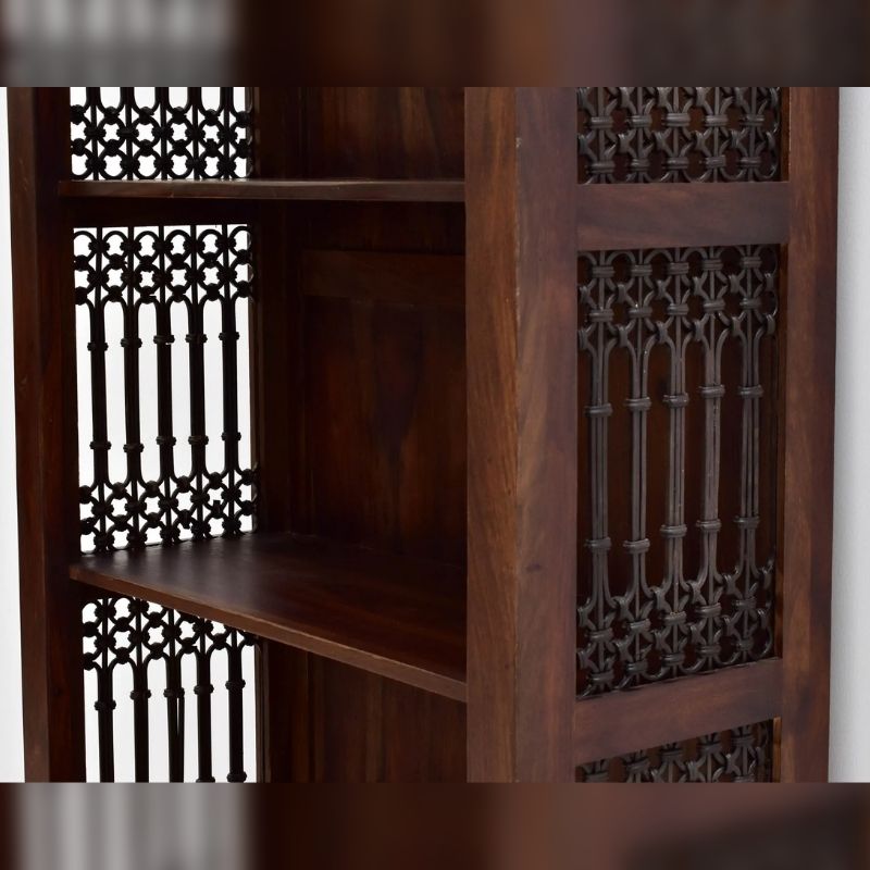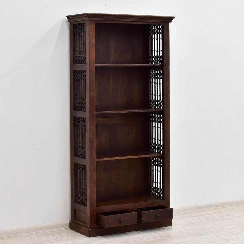Bookcase in solid acacia wood hand carved