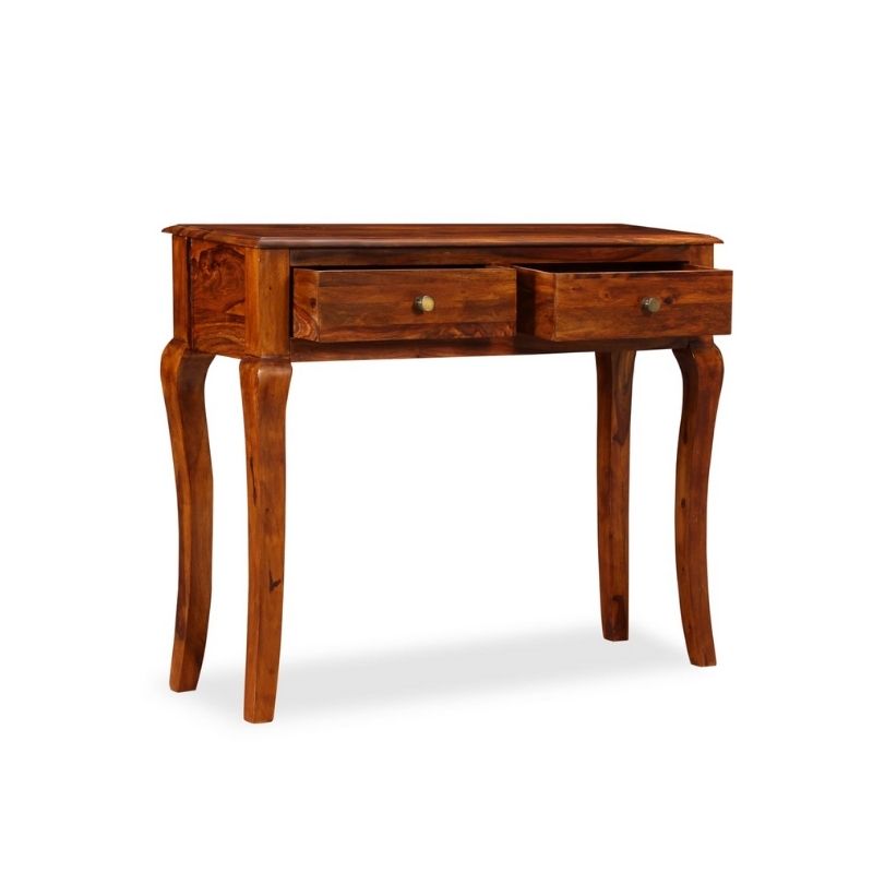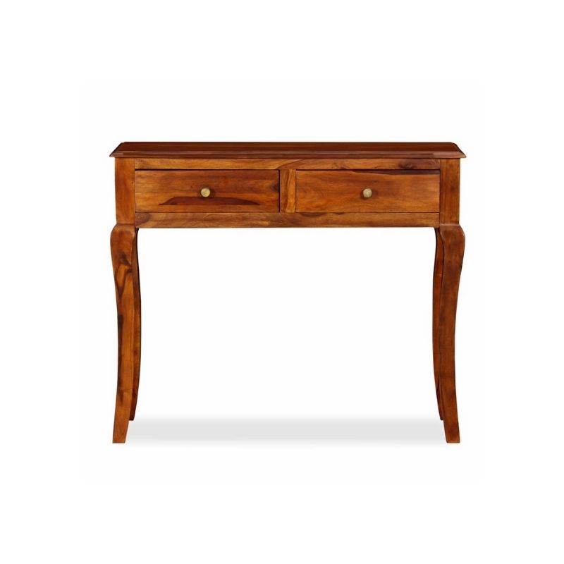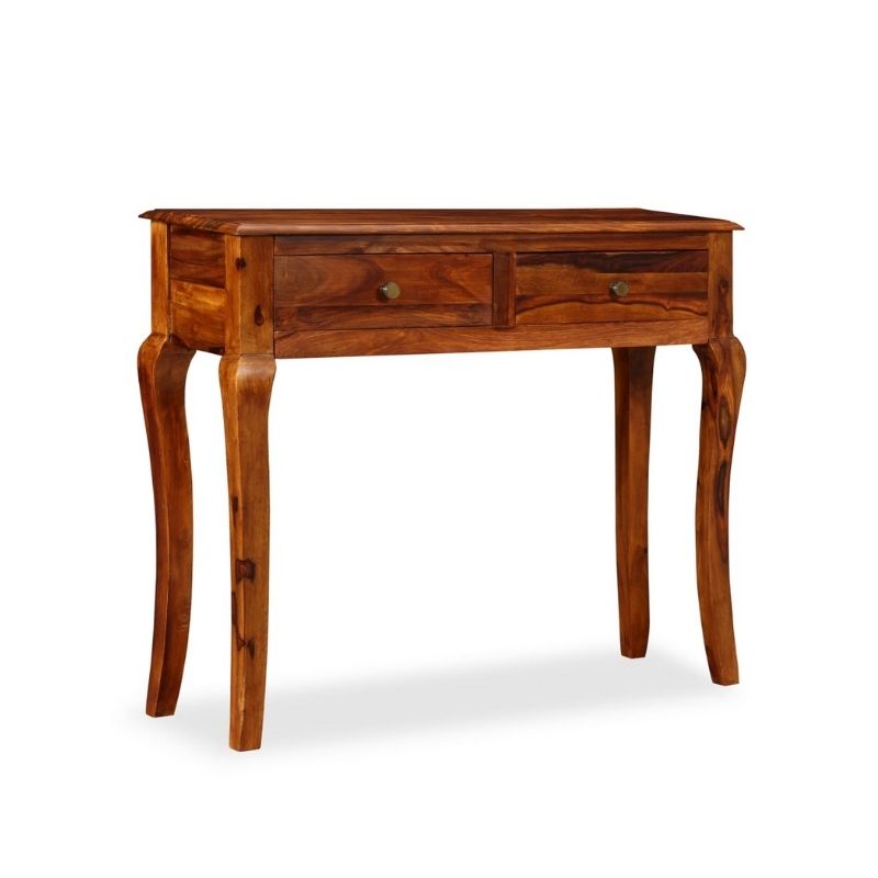 This console table will give your living room a colonial touch. Crafted from solid sheesham wood, the table is stable, durable and low maintenance. Sheesham is a tropical wood famous for its rich grains and also known as rosewood or rosewood. The sturdy top is ideal for placing decorative items such as fruit bowls, vases or potted plants. Drawers provide storage space to keep many smaller items organized and within reach. Every step of the construction process is carried out with the greatest care, whether polishing, painting or varnishing. Assembly is easy. Important note: the color and grains of the wood can vary from piece to piece, making each one unique and slightly different from the rest. Delivery is random.