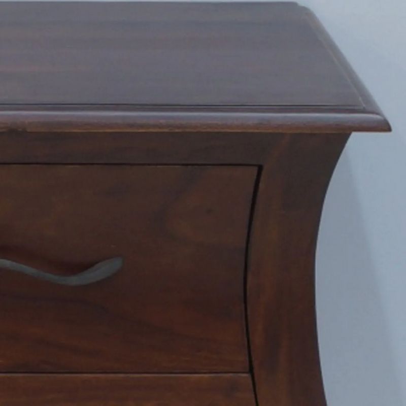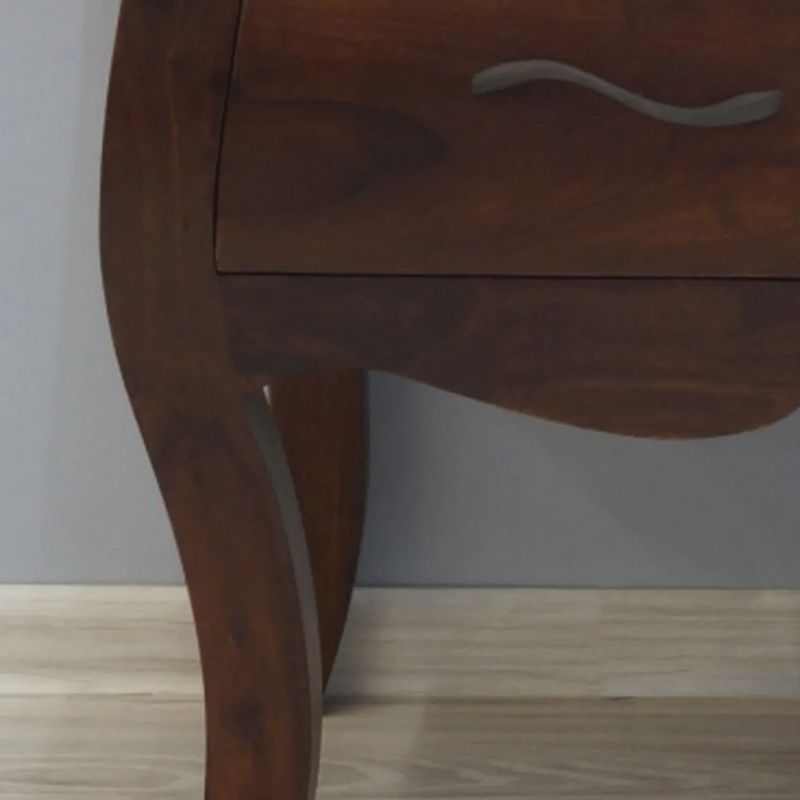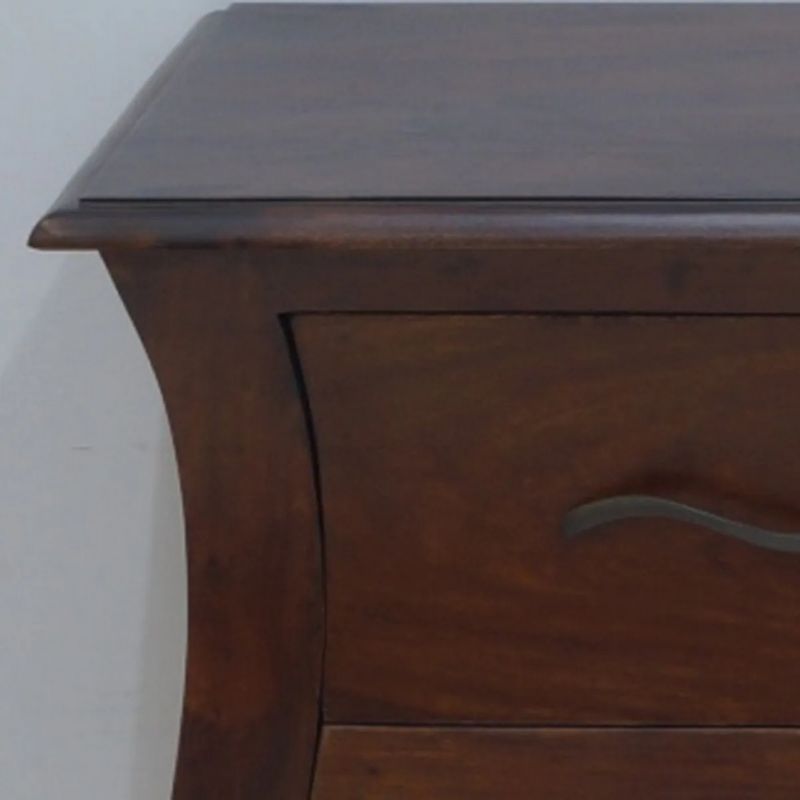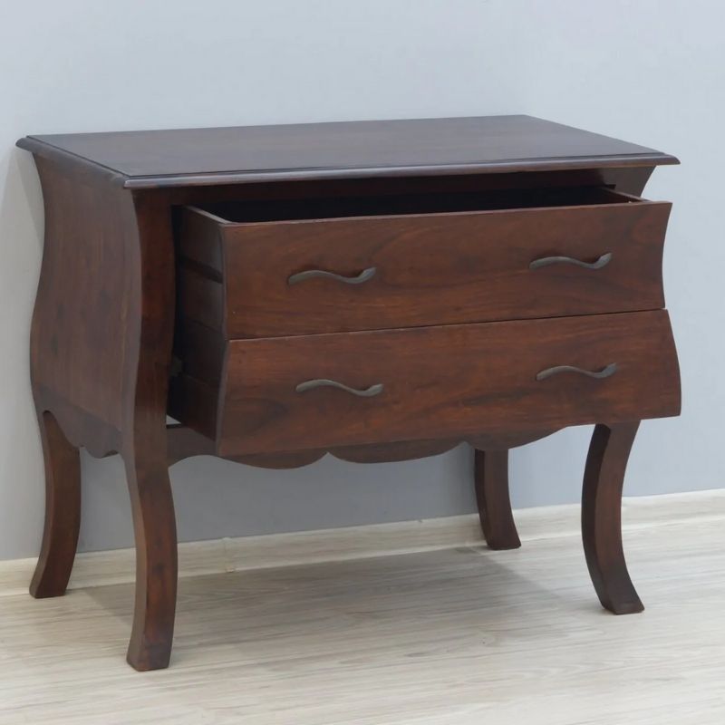 the console table was created manufactory of solid rosewood. Equipped with two spacious drawers with unique handles. The whole structure is based on bent opium-style legs. Despite the dark brown color, the furniture still has visible, beautiful, natural rosewood rings.