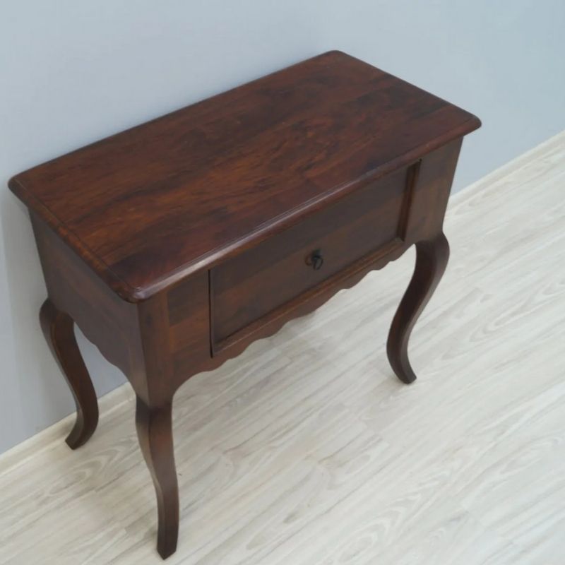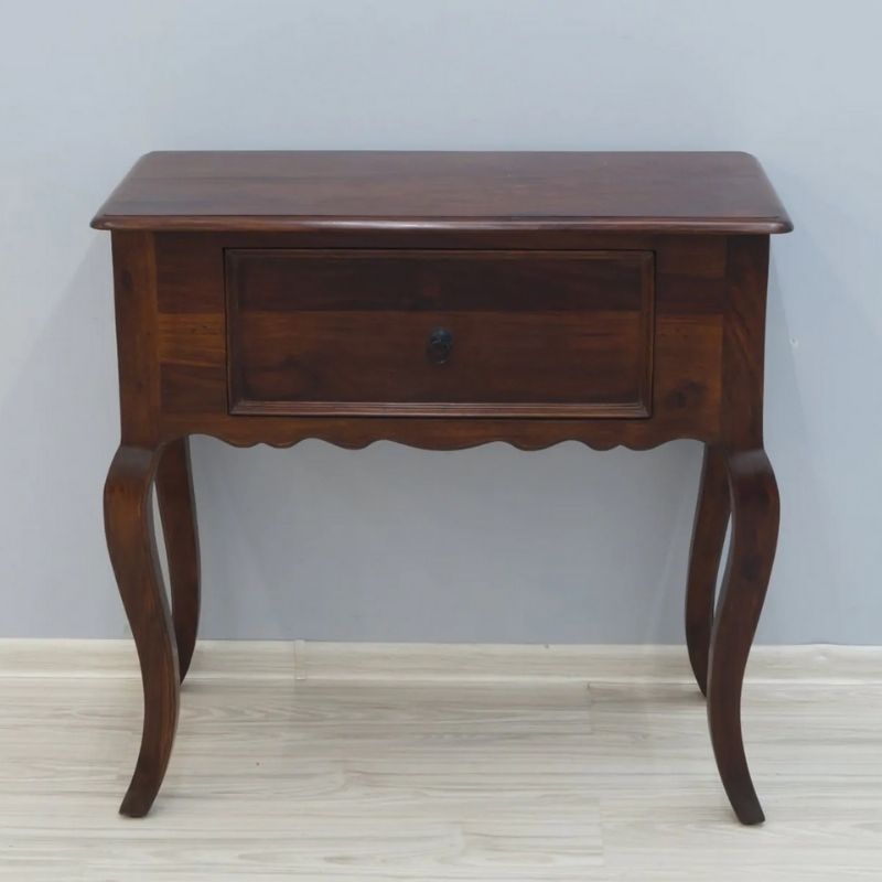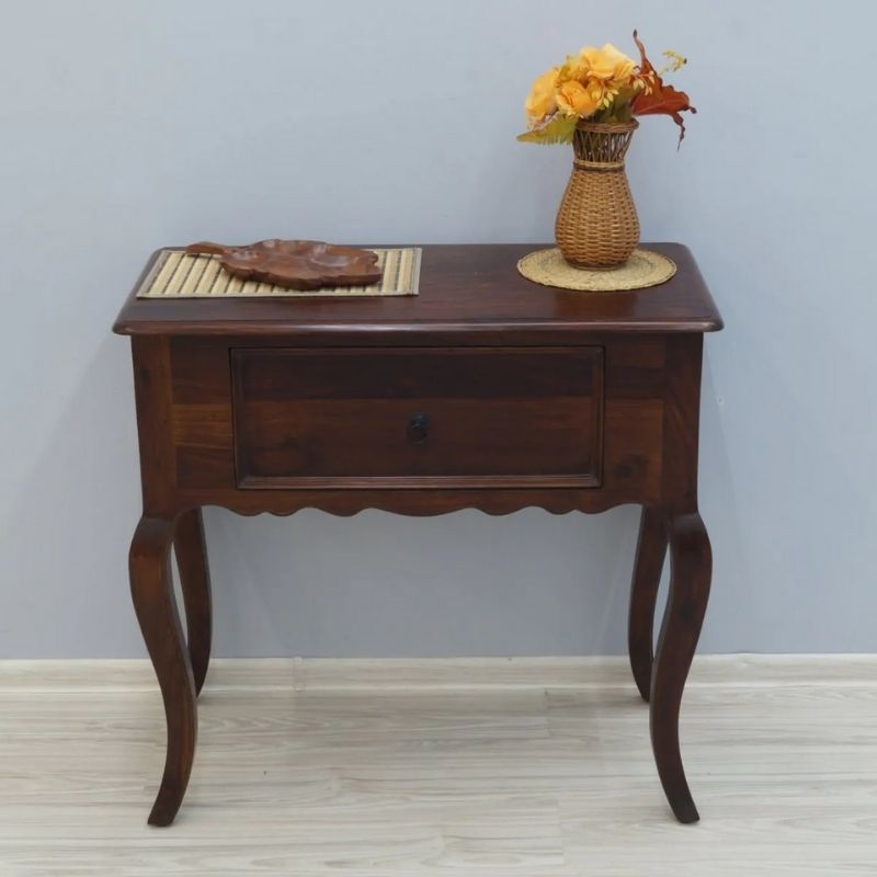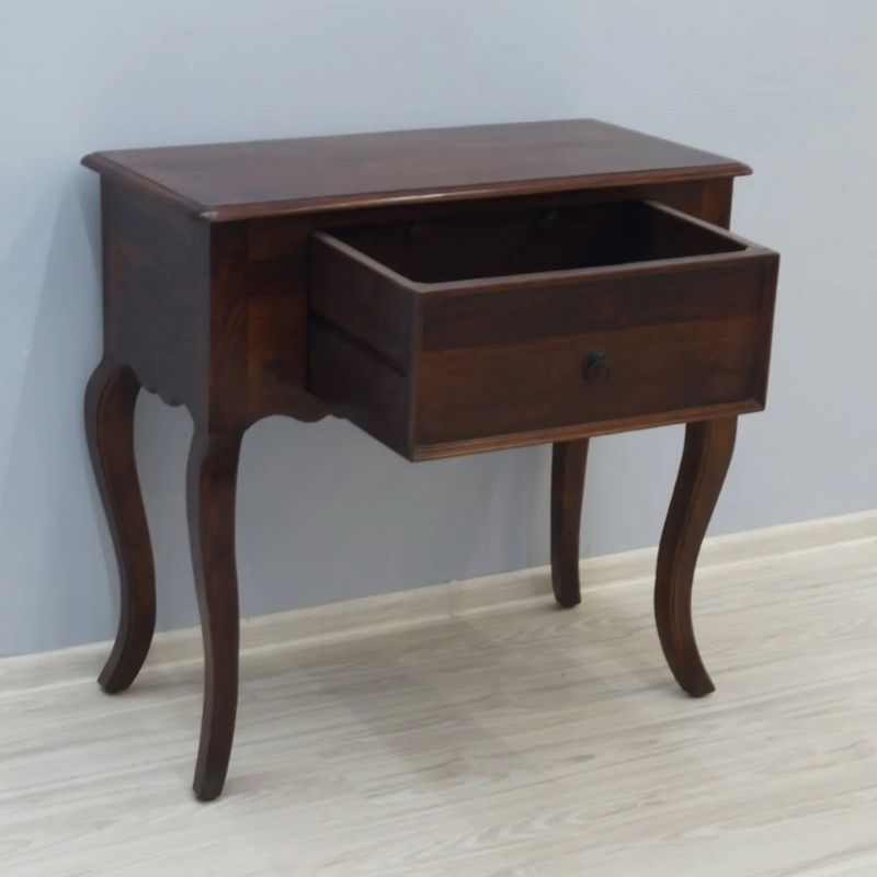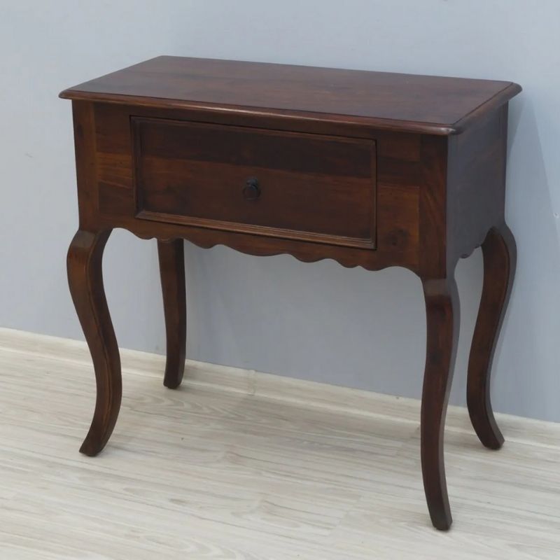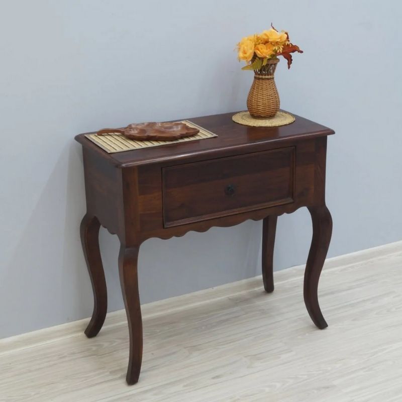 console table 100%solid rosewood. A piece of furniture stained in a dark shade of brown, equipped with one drawer and stylishly bent legs.