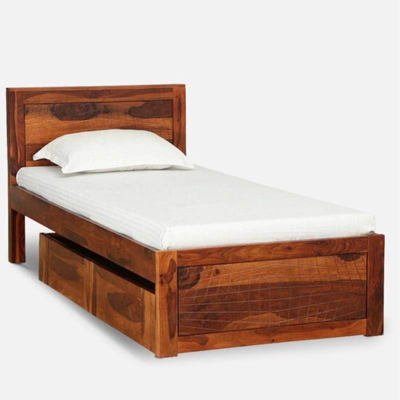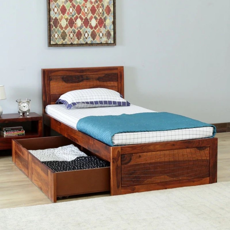 Category: Beds With Storage Tag: Nuevo Solid Wood Single Bed With Storage In Honey Oak Finish