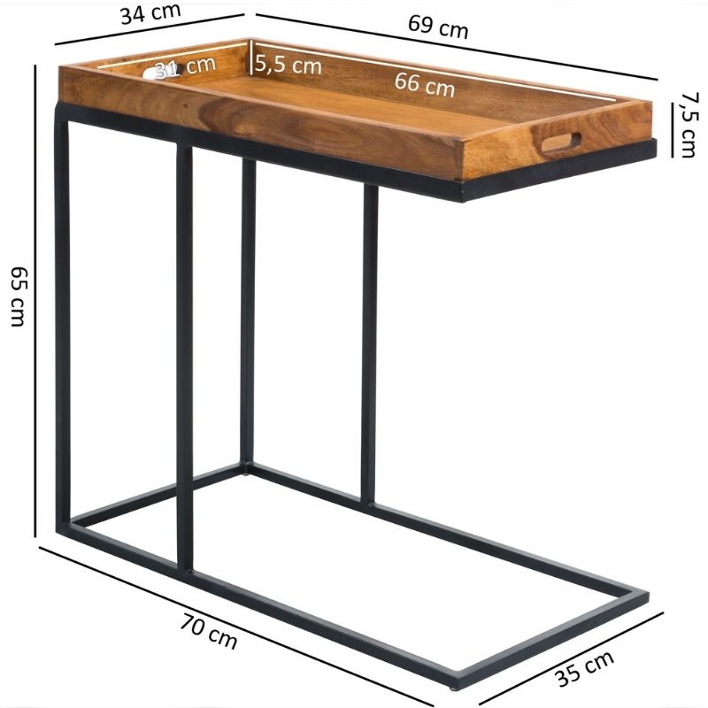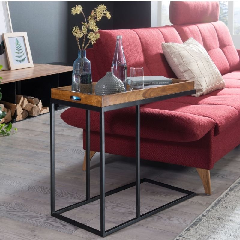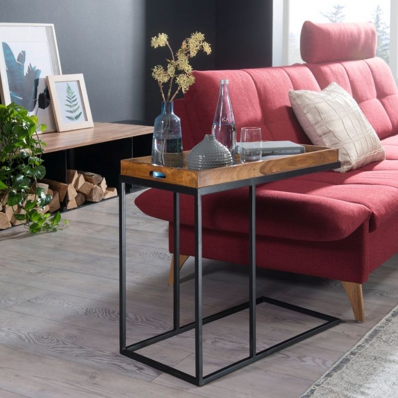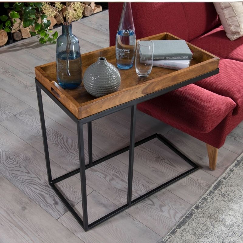 Sheesham wood side table metal frame