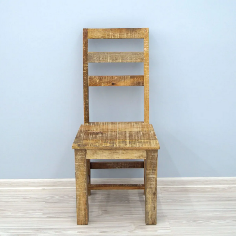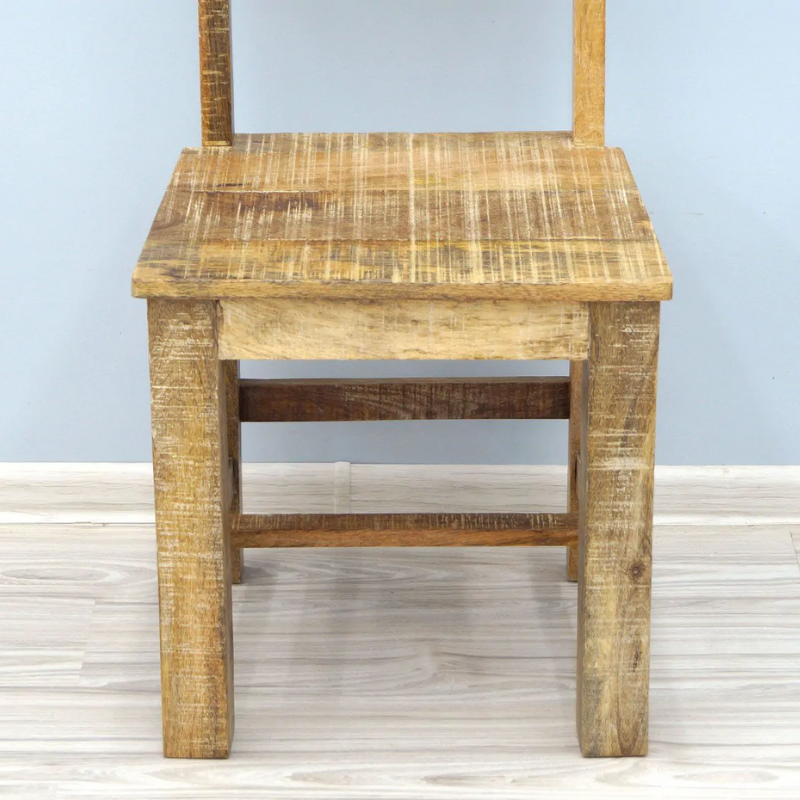 chair created by Indian craftsmen from exotic mango wood. This piece of furniture is made of 100% solid wood. Thanks to the raw shapes and structure of wood, it will be a perfect element of arranging a dining area in a modern, minimalist living space. Chairs are sold in even numbers.