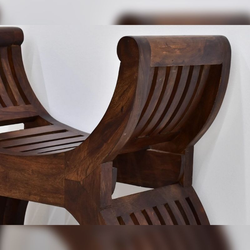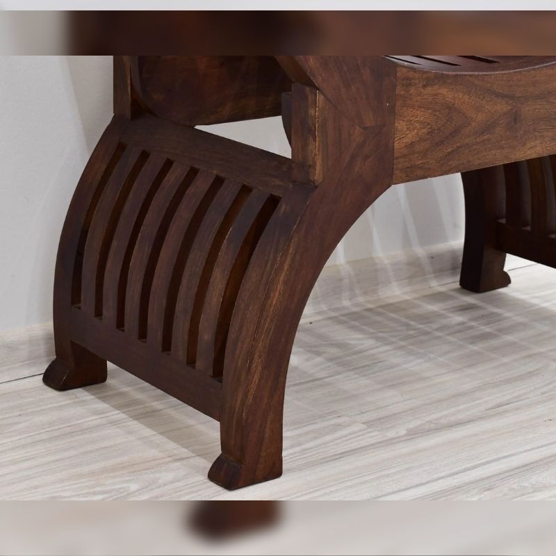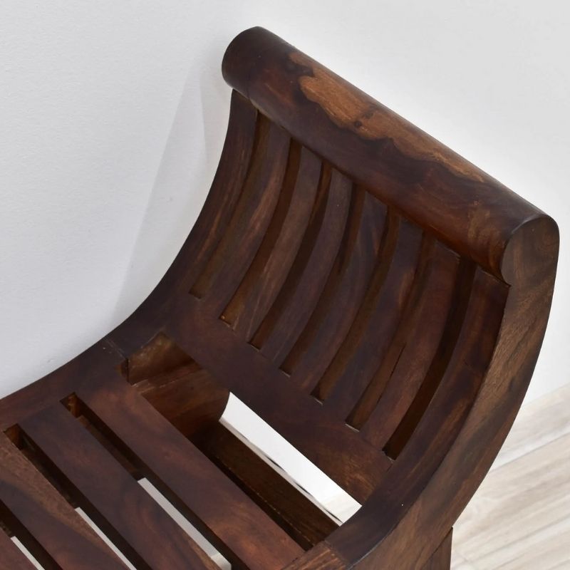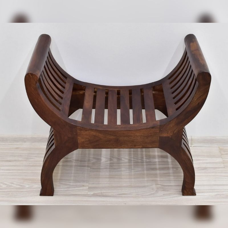 A solid rosewood bench in the Roman style is made of durable rosewood. It is a structure based 100% on solid wood, colored dark brown. It will be perfect as a bench with a dressing table in the bedroom or simply as a practical seat in the hall. The height of the seat from the ground is 39.5 cm.