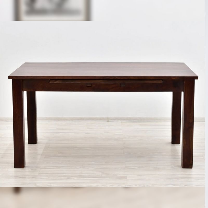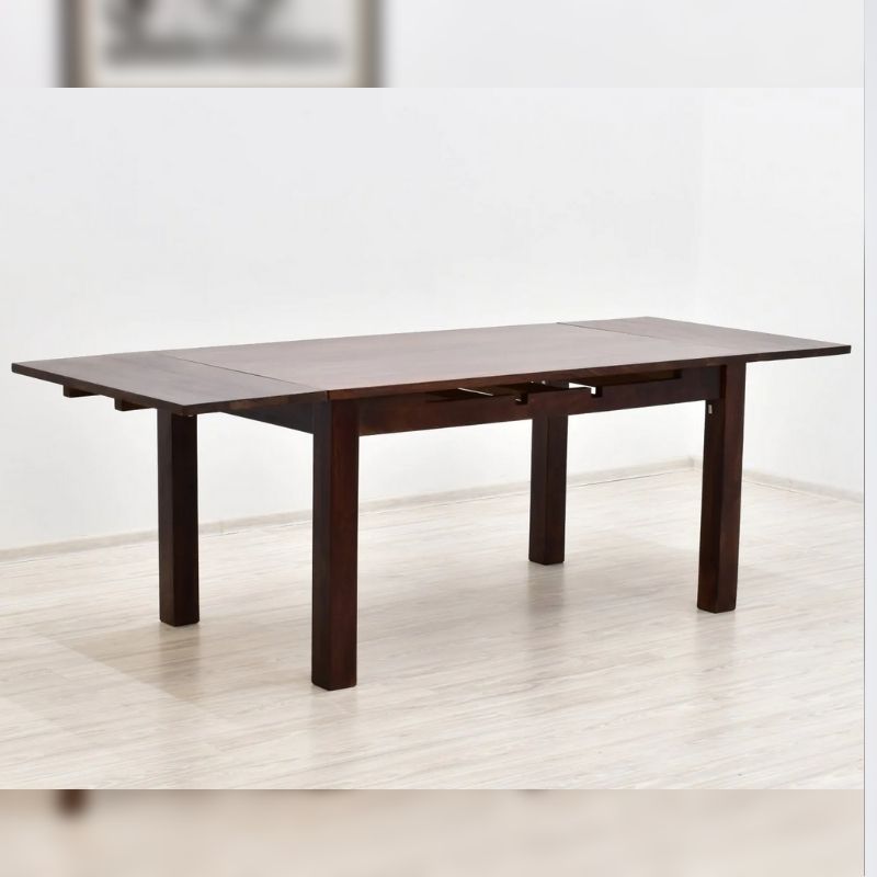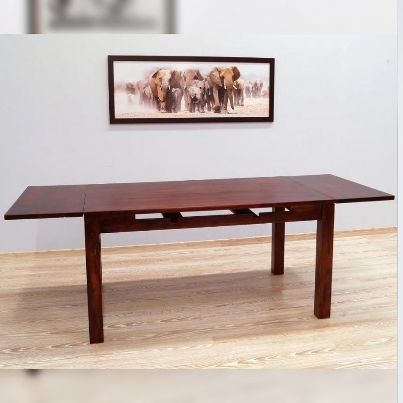 The dining table is made of 100% solid Indian rosewood. The dark shade matches its classic style, creating a very stylish piece of furniture. The table has the function of unfolding to larger sizes. 120 cm x 75 cm before unfolding, and 180 cm x 75 cm after unfolding. The table can be combined with chairs in the same dark shade of brown. The piece of furniture is made of very durable wood, and its characteristic graining makes each piece of furniture unique.