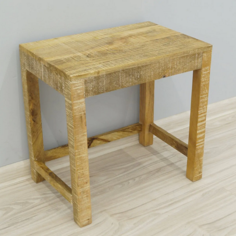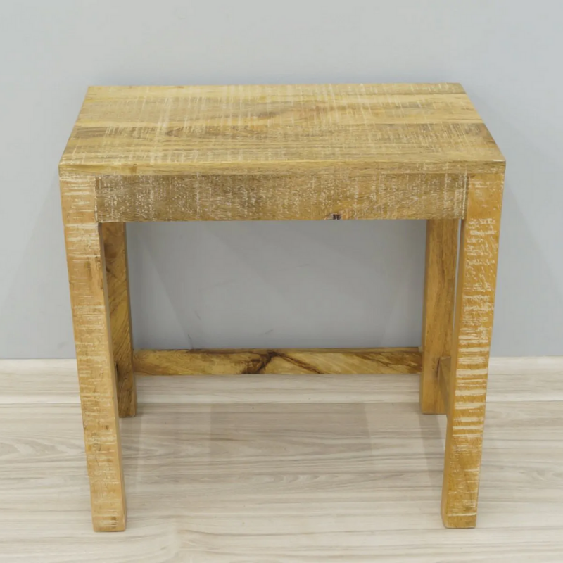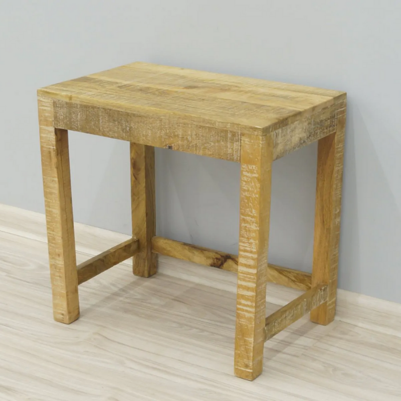 Colonial stool that can be used as a small table, made of 100% solid mango wood. It is an extremely simple structure in the natural color of the wood. The style fits perfectly into small, minimalistic spaces.